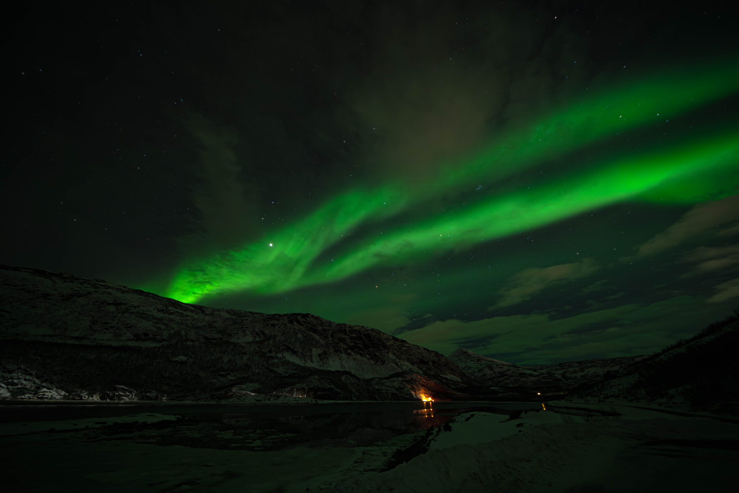 Die ersten zwei Tage hatte ich Glück mit dem Wetter und konnte am Straumfjordnes und in der Nähe von Abisko Polarlichter einfangen.